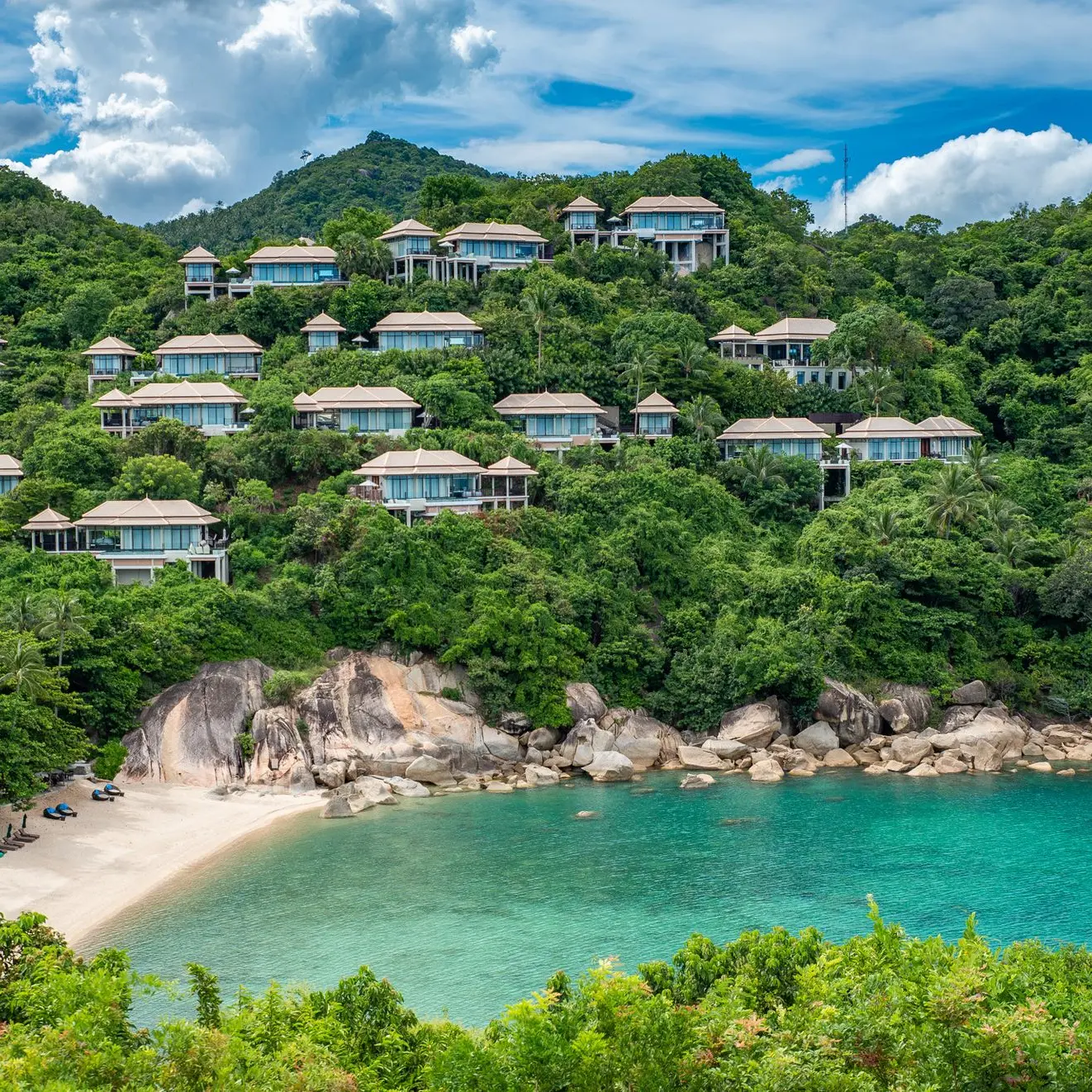 Imagine a secluded paradise where turquoise waters gently kiss a private bay and luxury is woven seamlessly into nature. This is Banyan Tree Samui, an exclusive hillside retreat overlooking the Gulf of Thailand, where panoramic ocean views and refined elegance create the ultimate island escape. If you've ever envisioned waking up to endless sea views from your own private infinity pool, this is where that dream becomes reality.